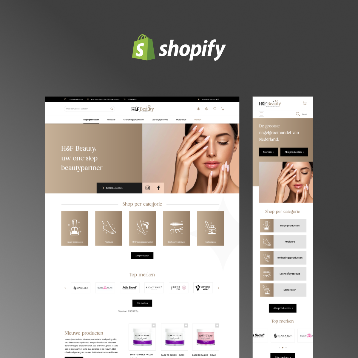 Wij doken erin. Geen quick fix, maar een volledige transformatie. We ontwikkelden een nieuwe Shopify webshop, volledig op maat ontworpen in de door ons ontworpen nieuwe branding en afgestemd op de wensen van H&F Beauty én hun klanten.